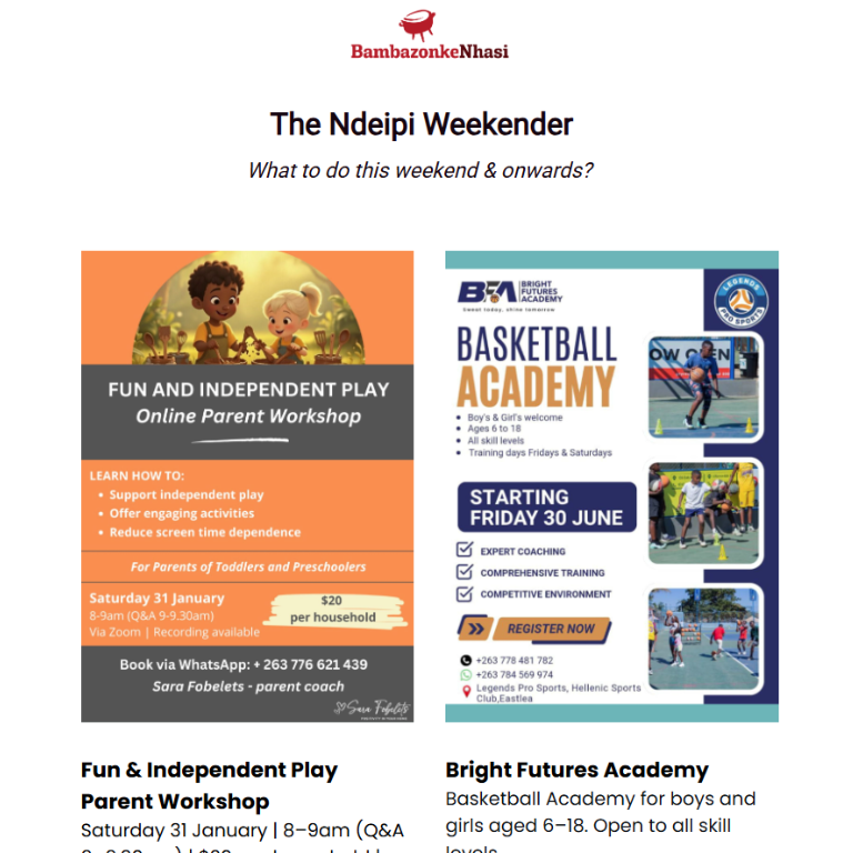 Bambazonke is a community mailing list with multiple services under our belt. Including a daily newsletter and The Weekender; an events calendar, our goal is to not only inform audiences of what is happening in the community, but making sure that our audiences are connected to various service providers.