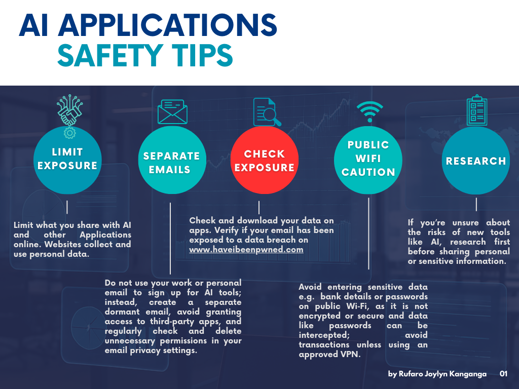 AI & Applications Safety Tips Rufaro Joylyn Kanganga Rufaro is a published research author with a Master of Commerce degree (dist.) from Rhodes Business School. Her research work explores how businesses can optimize the use of Generative AI while mitigating its inherent risks. Passionate about the safe adoption of AI and disruptive technologies, she shares her […]